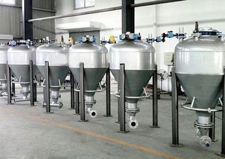 壓力發(fā)送灌輸送系統(tǒng)輸送過(guò)程: 1、系統(tǒng)處于進(jìn)料狀態(tài),這時(shí)進(jìn)料閥、排氣閥打開,進(jìn)氣閥、出料閥關(guān)閉,物料在重力作用下落入泵倉(cāng)內(nèi); 2、當(dāng)1個(gè)或多個(gè)泵倉(cāng)內(nèi)的料位計(jì)被覆蓋,或達(dá)到設(shè)定落料時(shí)間時(shí),進(jìn)料閥、排氣閥關(guān)閉; 3、在進(jìn)料閥、排氣閥關(guān)閉并且充氣密封結(jié)束后,進(jìn)氣閥、出料閥打開,物料進(jìn)入輸送管道開始輸送。 4、在輸送過(guò)程中,應(yīng)根據(jù)壓力調(diào)氣閥的開關(guān)狀態(tài),以控制管道的輸送壓力,防止堵塞管道; 5、當(dāng)管道輸送壓力低至設(shè)定值時(shí),進(jìn)氣閥、出料閥關(guān)閉,經(jīng)停一個(gè)停止延遲時(shí)間; 6、循環(huán)重復(fù),等待下一個(gè)循環(huán)開始;